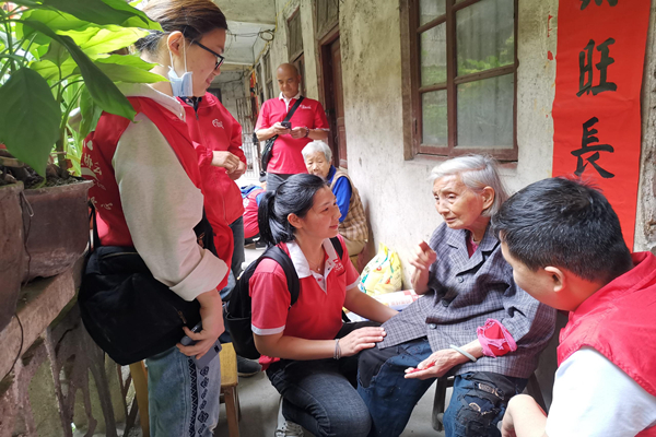 貴港分公司志愿者聯(lián)合貴港市荷城義工協(xié)會帶著大米、雞蛋、花生油等慰問品,走訪慰問城區(qū)6名空巢老人,并向他們講解新冠肺炎防疫知識,叮囑老人在疫情期間注意身體健康。