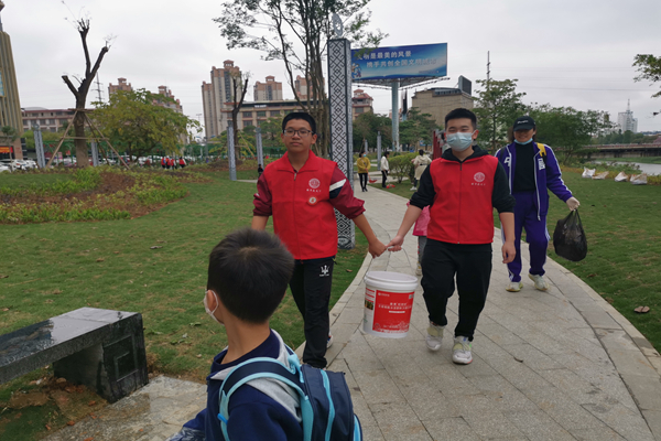 南寧營業(yè)部廣大青年職工聯(lián)合當?shù)亍皣鴮W贏天下”志愿者到康和城肯德基廣場、繡球廣場江濱路沿線社區(qū)街道進行大掃除。